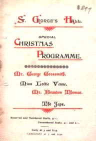 15. A rare 1899 St. George's Hall Special Christmas Program featuring George Grossmith in A New Humorous and Musical Sketch, Awful Bores, featuring a number of original songs. Four pages. Dimensions eight and a half by five and a quarter inches. Minor wear, light foxing, and two small file holes else good. $75.00 |