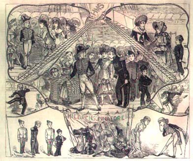 19. A wonderful 1879 engraving of the children's production of HMS Pinafore at the Opera Comique, published in the Illustrated London news. Dimensions seven by eight and a quarter inches, with page overall fifteen and three quarters by ten and a quarter inches. $40.00 |