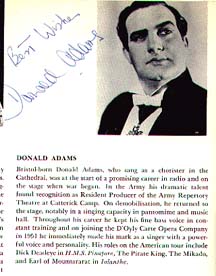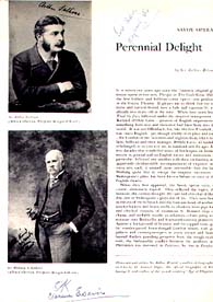 20. An autographed souvenir program from the D'Oyly Carte American tour of The Mikado circa 1962, signed by Donald Adams, Joanne Moore, Josephine Gale, Ceinwen Jones, Musical Director Isadore Godfrey, Director of Proeuctions Herbert Newby, and more. The program features more thaqn a dozen illustrations from the Morgan Library and elsewhere, great articles, production and cast photos, and the complete libretto. Dimensions twelve by nine inches. $75.00 |