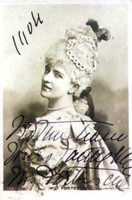 22. A rare autographed photographic postcard of May Fortescue, a young friend and protege of W. S. Gilbert's, who created Lady Ella in Patience and Celia in Iolanthe. She also appeared in Gilbert's Pygmalion and Galatea and Sweethearts. $75.00 |