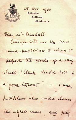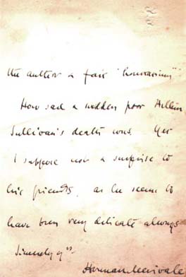3. A November 25, 1900 letter from the playwright Herman Merivale about the death of Arthur Sullivan. He writes in part, "How sad & sudden poor Arthur Sullivan's death was. Yet I suppose it was not a surprise to his friends, as he seems to have been very delicate alway. Merivale was part of the G & S circle. He adapted plays for Henry Irving and Ellen Terry, and one of Gilbert's letters to him, written in 1887, is quoted in Stedman, 239. $150.00 |